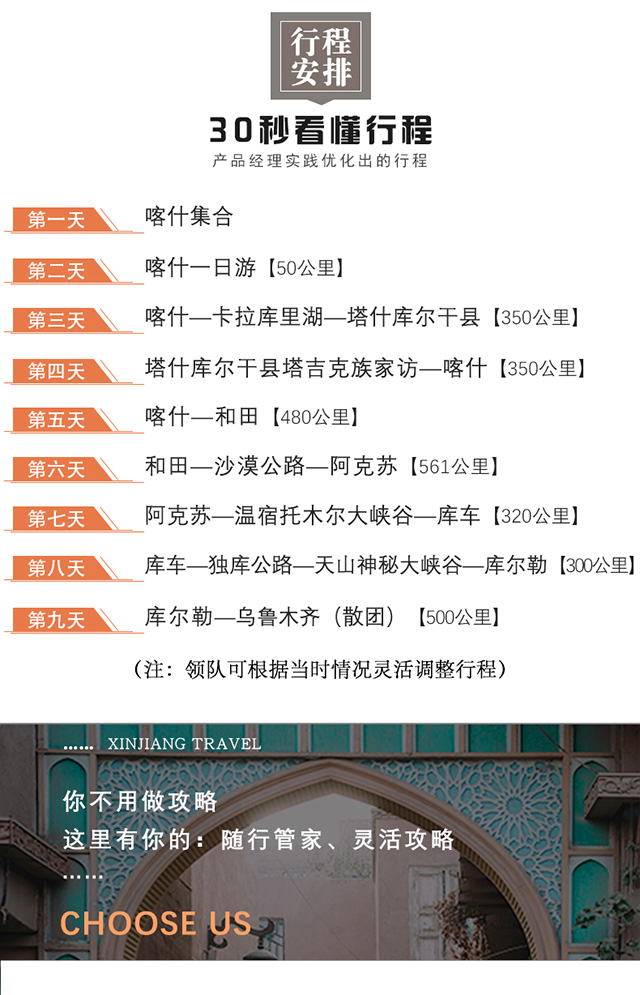 1,新疆面積比較大,景點(diǎn)與景點(diǎn)之間距離比較遠,乘車(chē)時(shí)間比較長(cháng),再有新疆安檢比較多,區間限速,修路,盤(pán)山路等因素;因此游客要有早出晚歸的心里準備。本行程備注公里數和時(shí)間均為百度搜索或經(jīng)驗總結,不作為官方數據,僅供游客參考;
