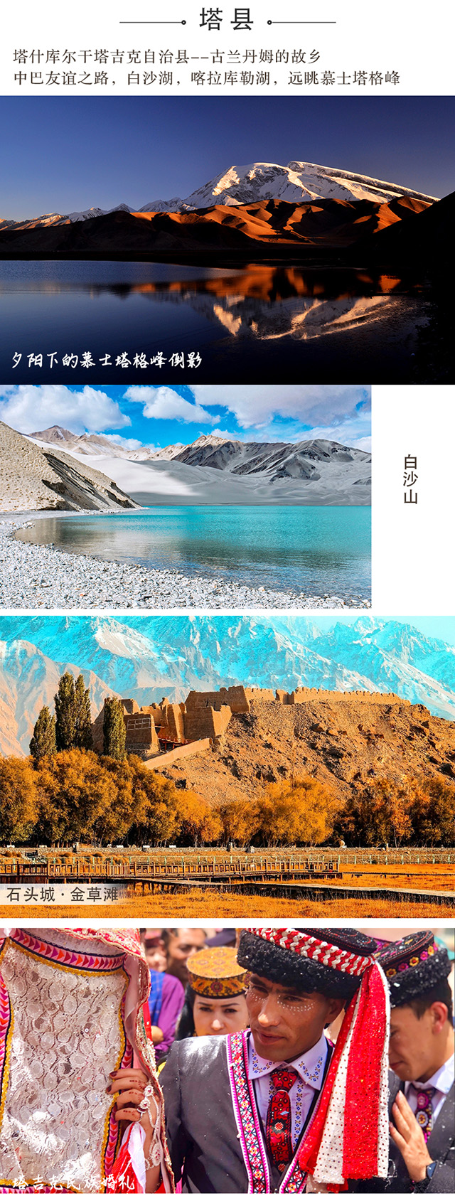 行程亮點(diǎn):白沙山,石頭城,公格爾峰,塔吉克見(jiàn)面禮