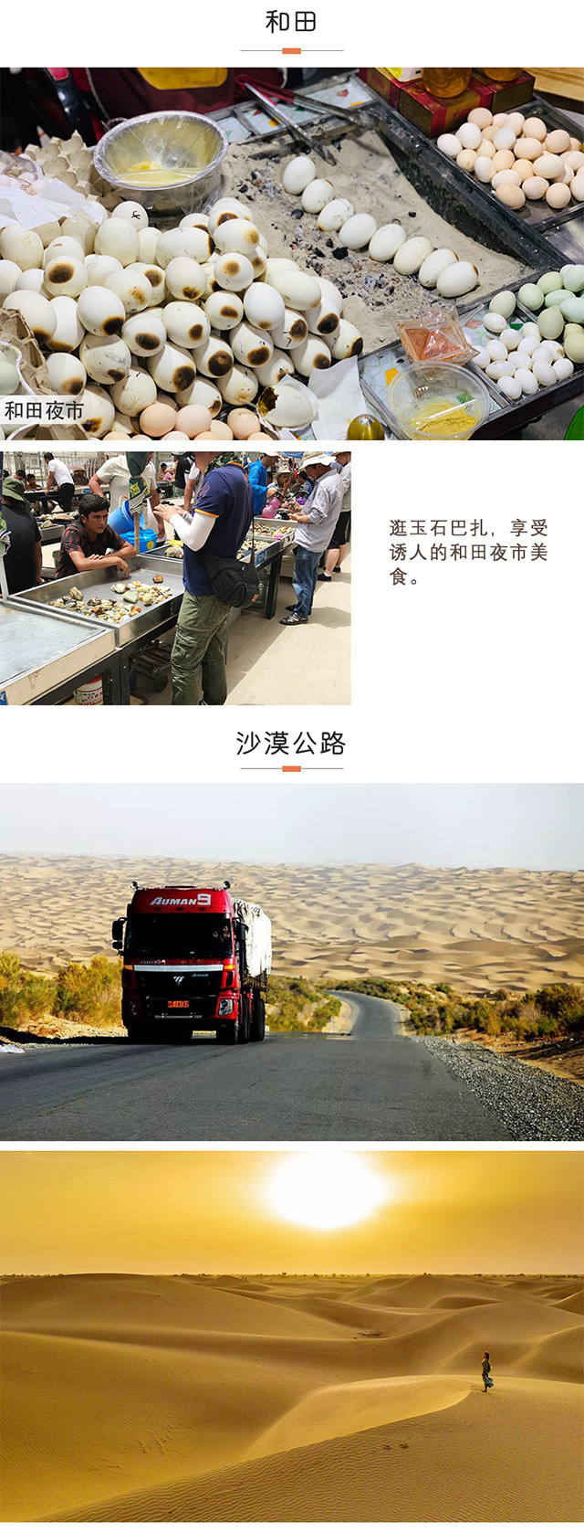 行程亮點(diǎn):沙漠公路、塔克拉瑪干大沙漠、玉石巴扎