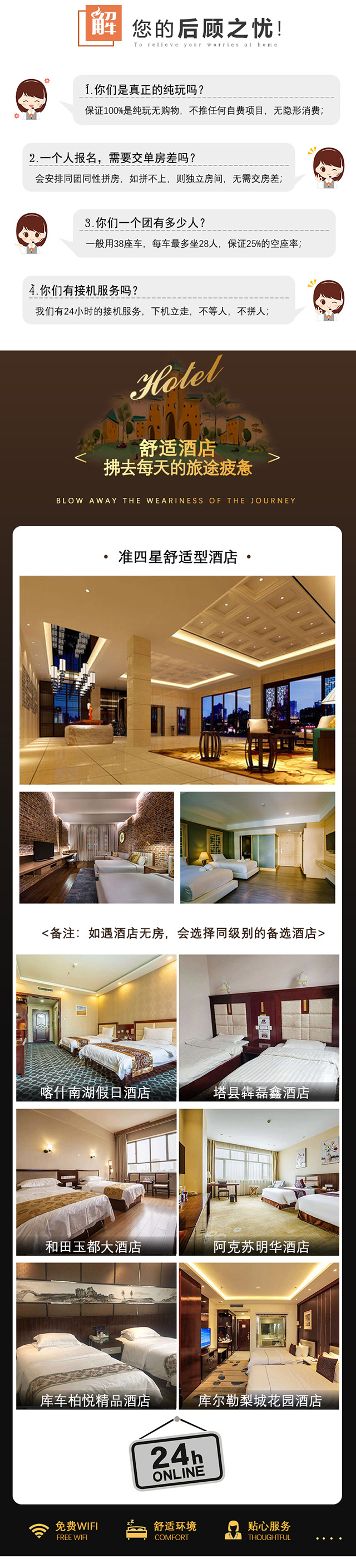 住宿安排:庫車(chē)縣(舒適型酒店,標準間、獨立衛?。?